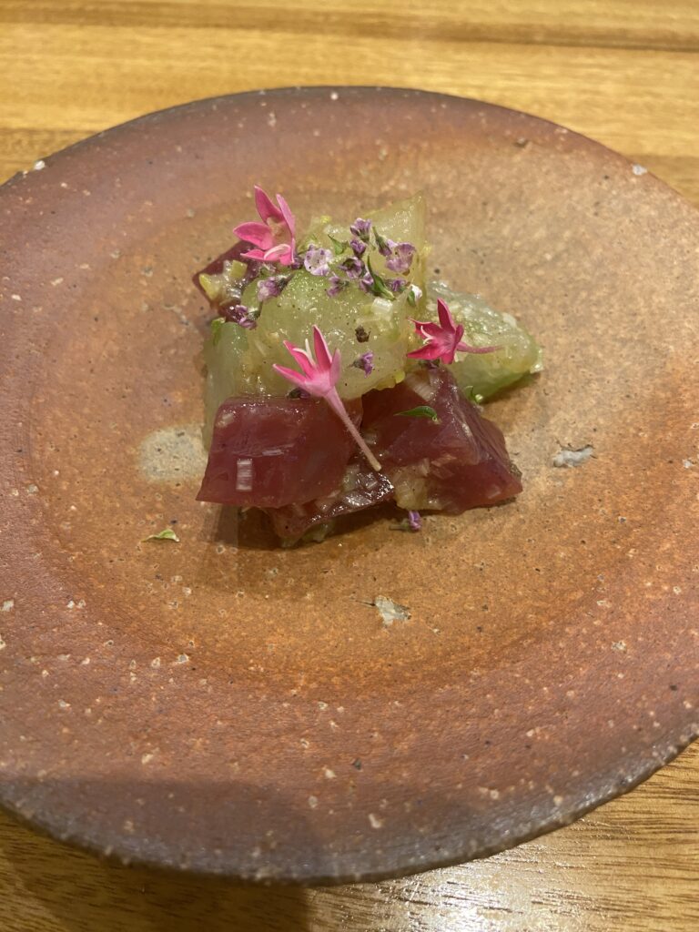 初手から鮮烈。かつおの力強い旨味に、青山椒の痺れるような清涼感が重なり、冬瓜の優しい食感が全体をまとめる。口の中で複数の香りと味が波のように押し寄せ、食欲を一気に引き上げます。