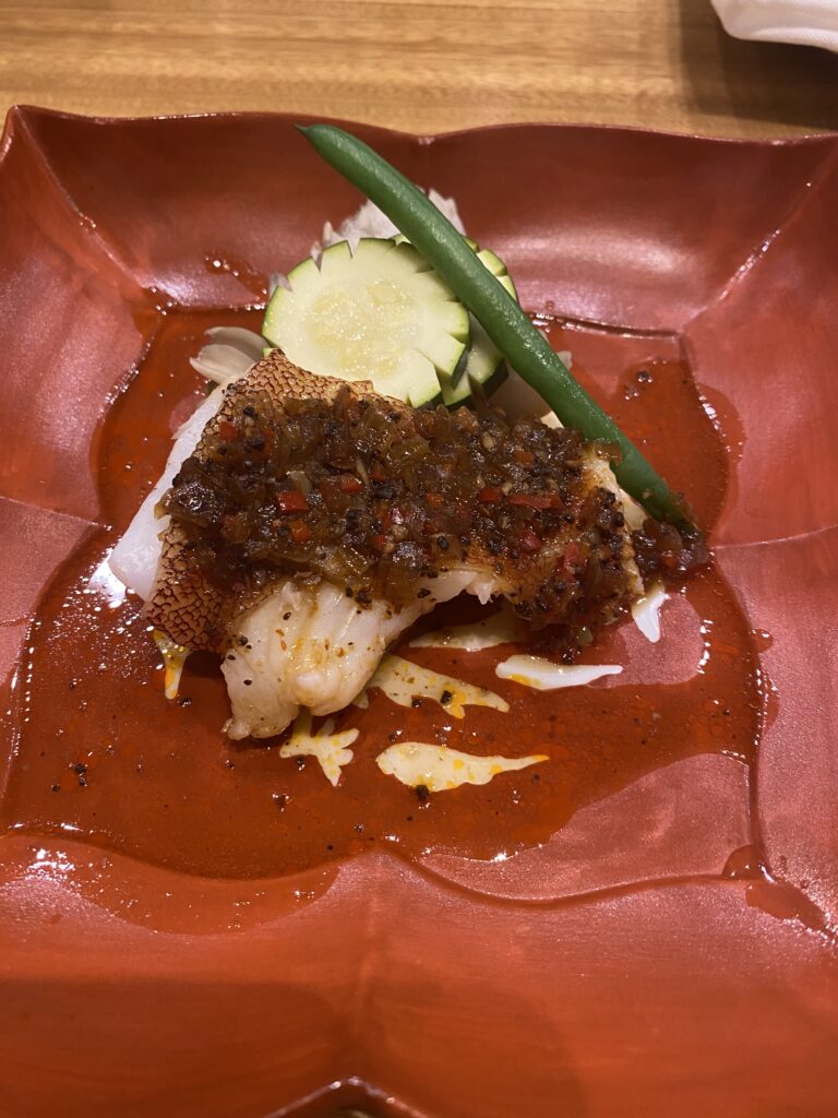 合わせたのは紹興酒8年を2合。熟成由来の深みある香りとまろやかな旨味が、スパイスや発酵調味料を多用する「川」の料理と見事に調和します。特にアカハタのトウチ蒸しとの相性は抜群で、思わず杯が進みました。