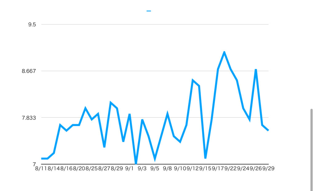 • 尿酸値は上下を繰り返しつつ、8前後に落ち着いてきた 食事内容による影響は見えるものの、豚しゃぶ中心の食事では大きな変化は出ず、わずかな改善にとどまりました。
