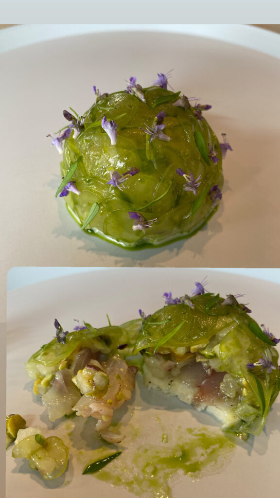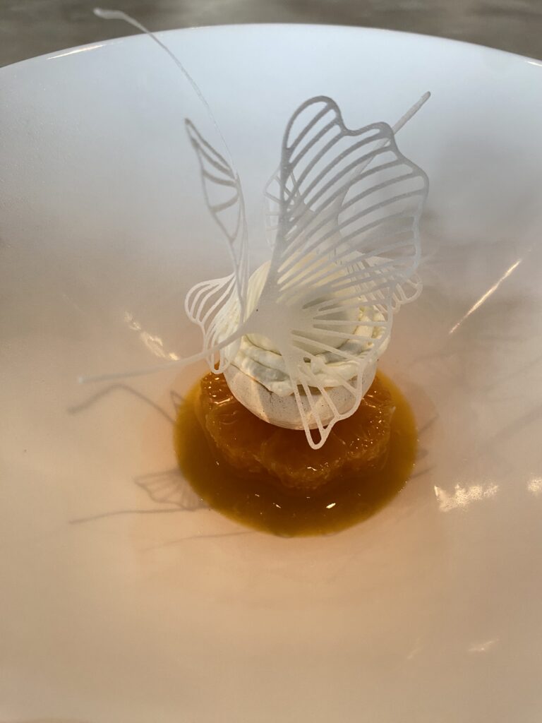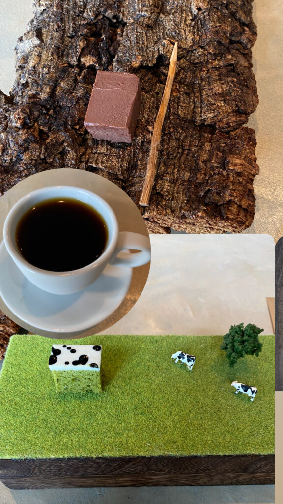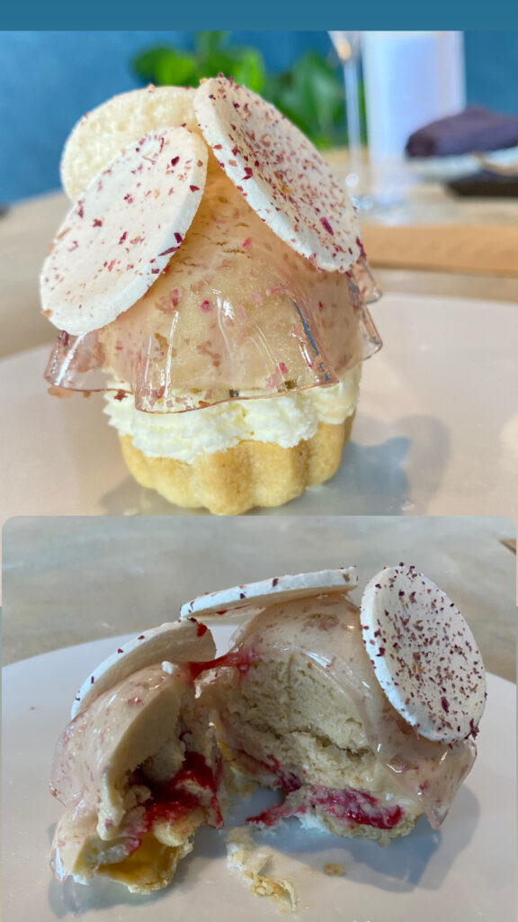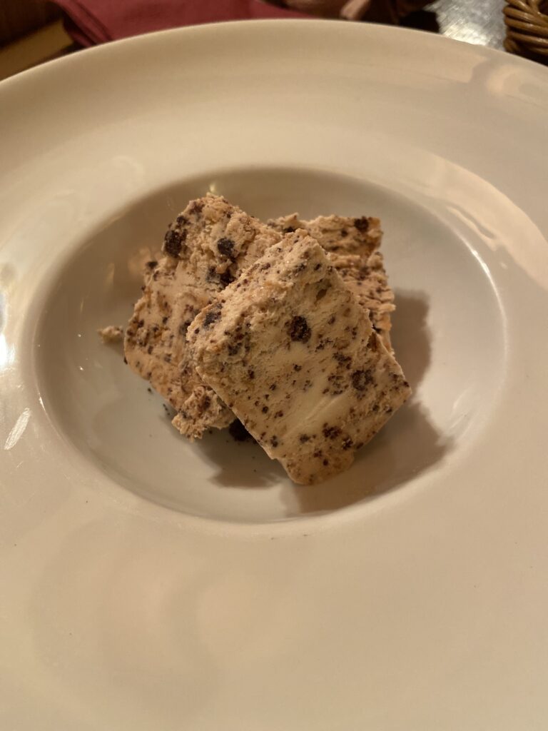 食後のデザートには半冷凍のアイス菓子、セミフレッド。軽やかな甘みが余韻を整え、豊かな食事の締めくくりにふさわしいものでした。