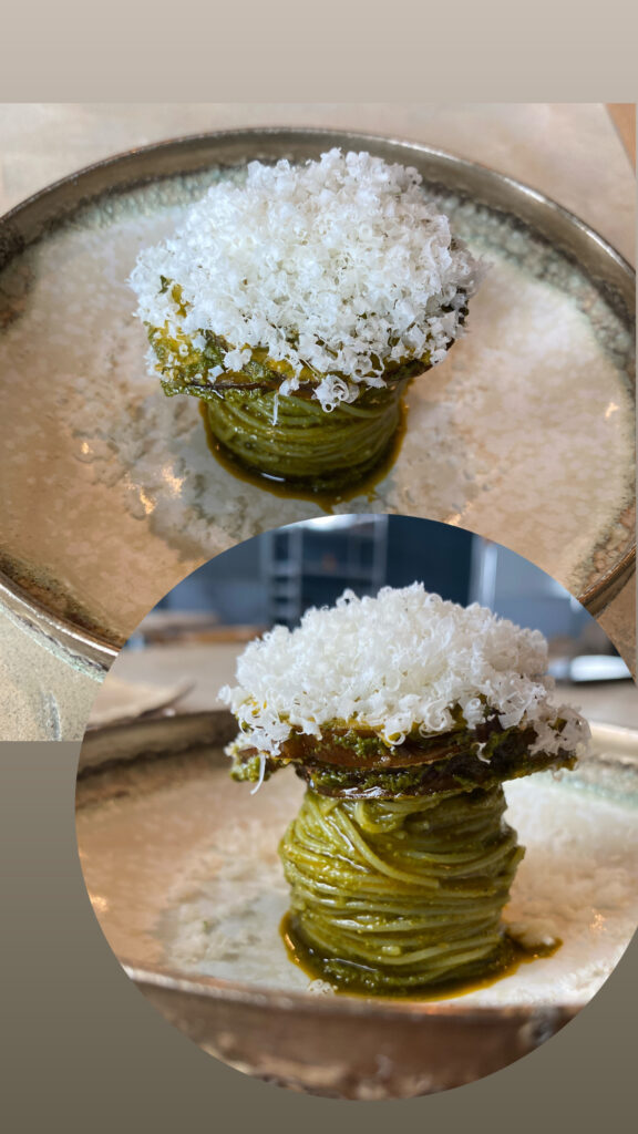 名物料理。胡桃を中心にしたナッツソースが絡む自家製トンナレッリは、この日のハイライトのひとつ。香りと食感が重層的で、一皿で記憶に残るインパクトを放ちました。