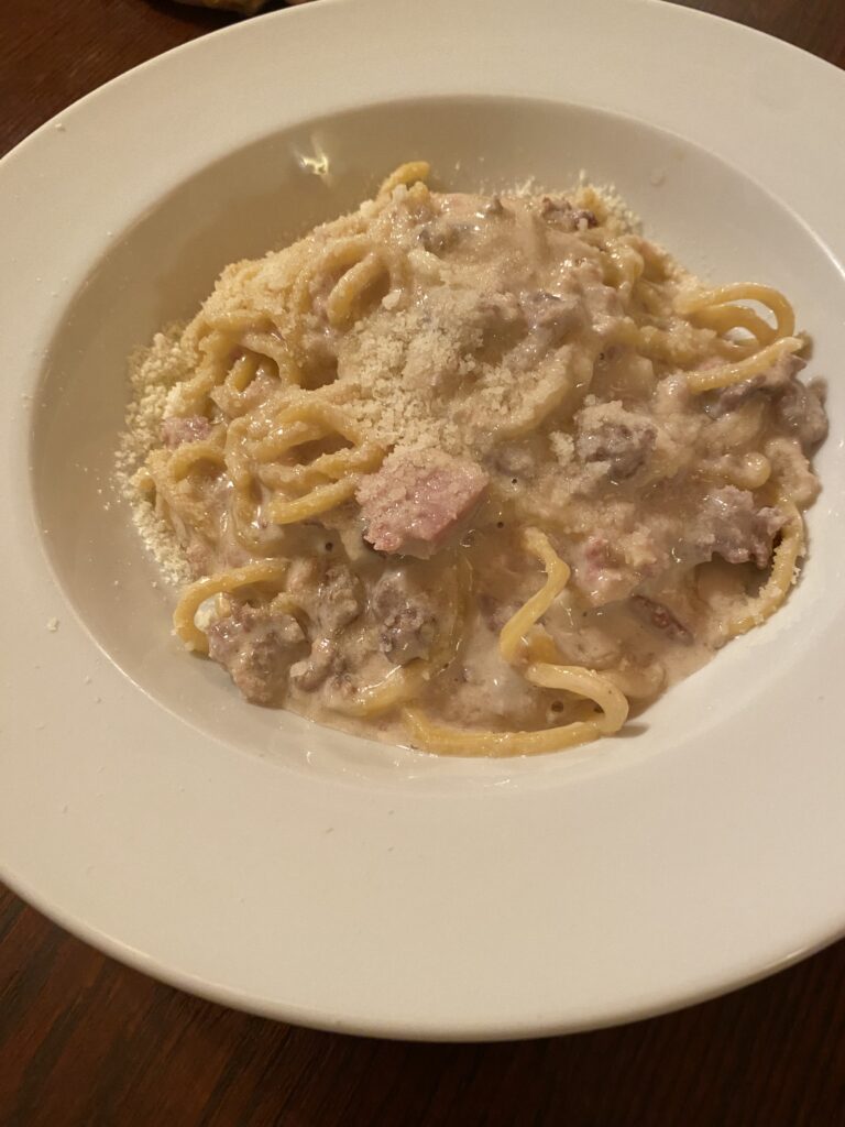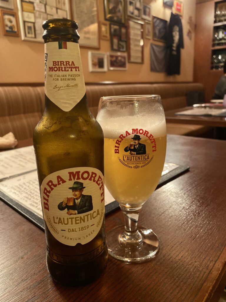 料理を引き立てたのはドリンクの数々。イタリアビールから始まり、グラスでスパークリング1杯、白ワイン3杯、赤ワイン2杯。さらにグラッパ、最後はエスプレッソで締め。料理とのペアリングは抜群で、特にナッツソースのパスタと白ワインの相性の良さは印象的でした。