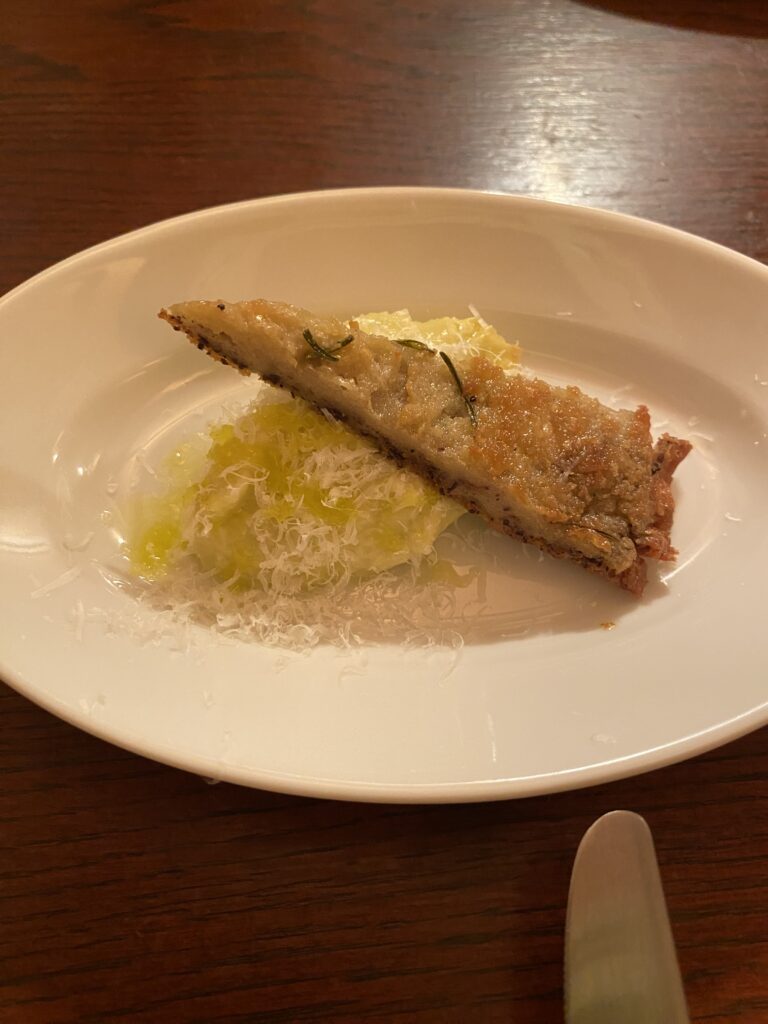 自家製パスタの「トンナレッリ」に胡桃を中心としたナッツのソースを合わせた一皿。ナッツの香ばしさと甘み、オイルのまろやかさ、パスタの弾力が重なり合い、口の中で豊かなハーモニーを奏でます。シンプルなのに驚くほど奥深い。思わず「胃袋が許すなら全種類のパスタを試してみたい」と思わせられるほどでした。