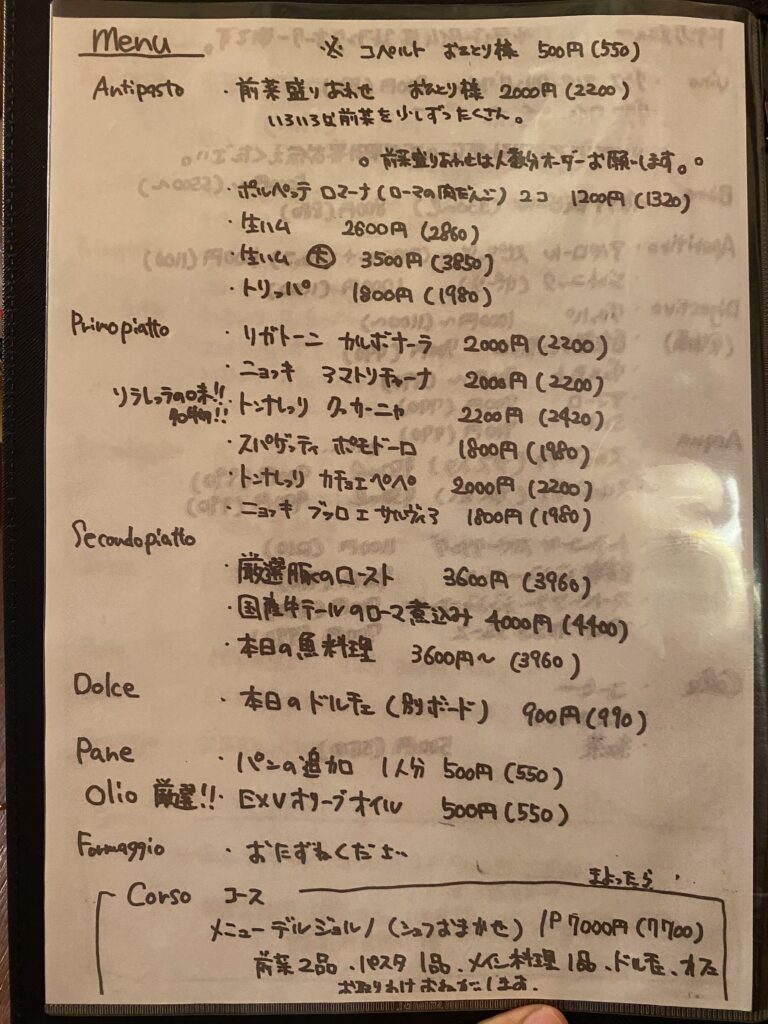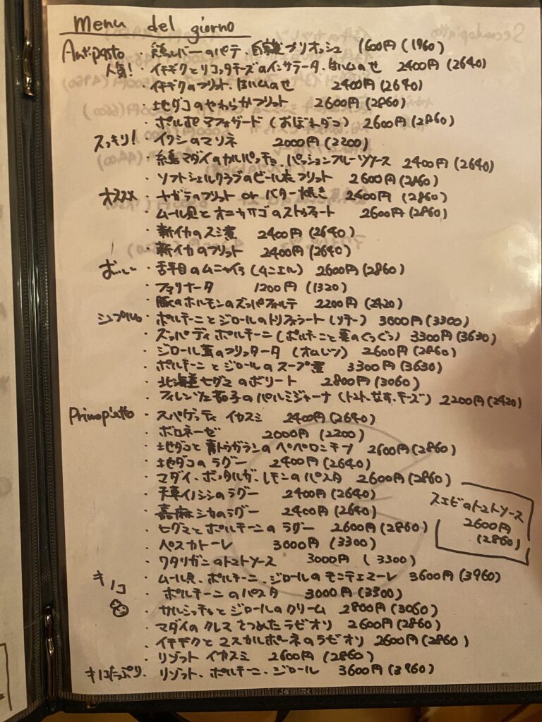 お店のスタイルをひと言で表すならば、「クラシックなイタリアンをアラカルトで楽しめる場所」。宮崎の「らんぷ亭」をイタリアンに置き換えたようなイメージがしっくりきます。肩肘を張らず、それでいて一皿ごとに本物の味わいを感じさせてくれる。そうした絶妙なバランスこそ、この店の魅力なのでしょう。