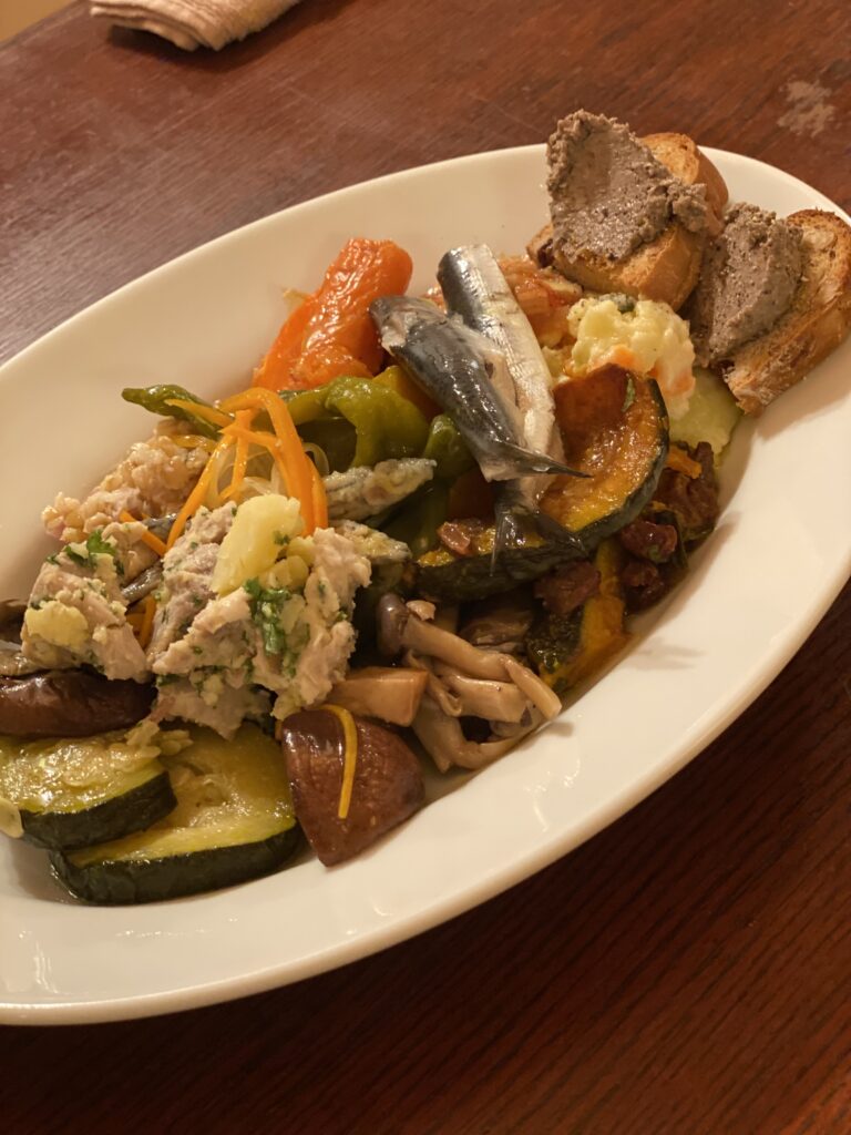 季節の野菜を中心に、生ハムや自家製パンを添えた盛り合わせ。野菜の甘みや酸味、塩気のバランスが絶妙で、「日常の延長線上にある非日常」を体現したような皿でした。