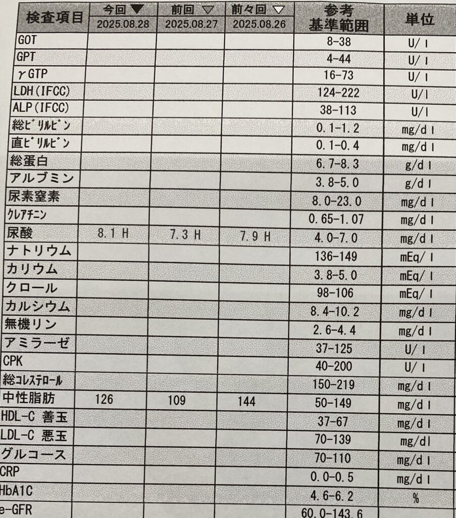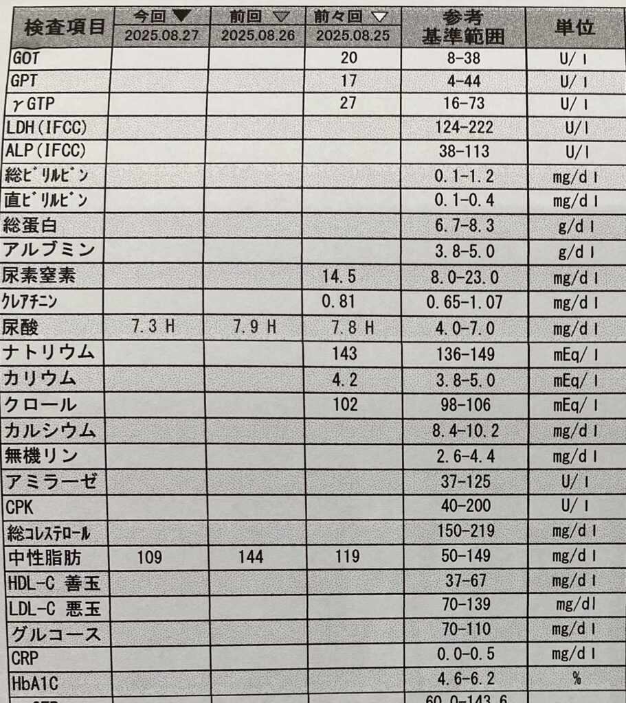 - 焼肉連続でも尿酸値は意外と7.5で踏みとどまる