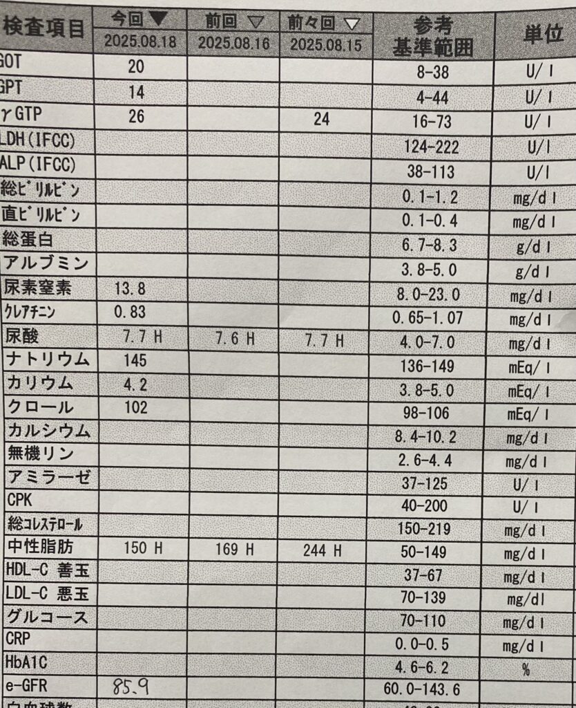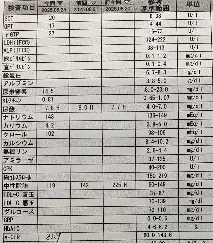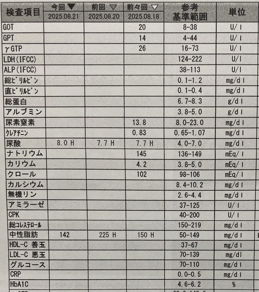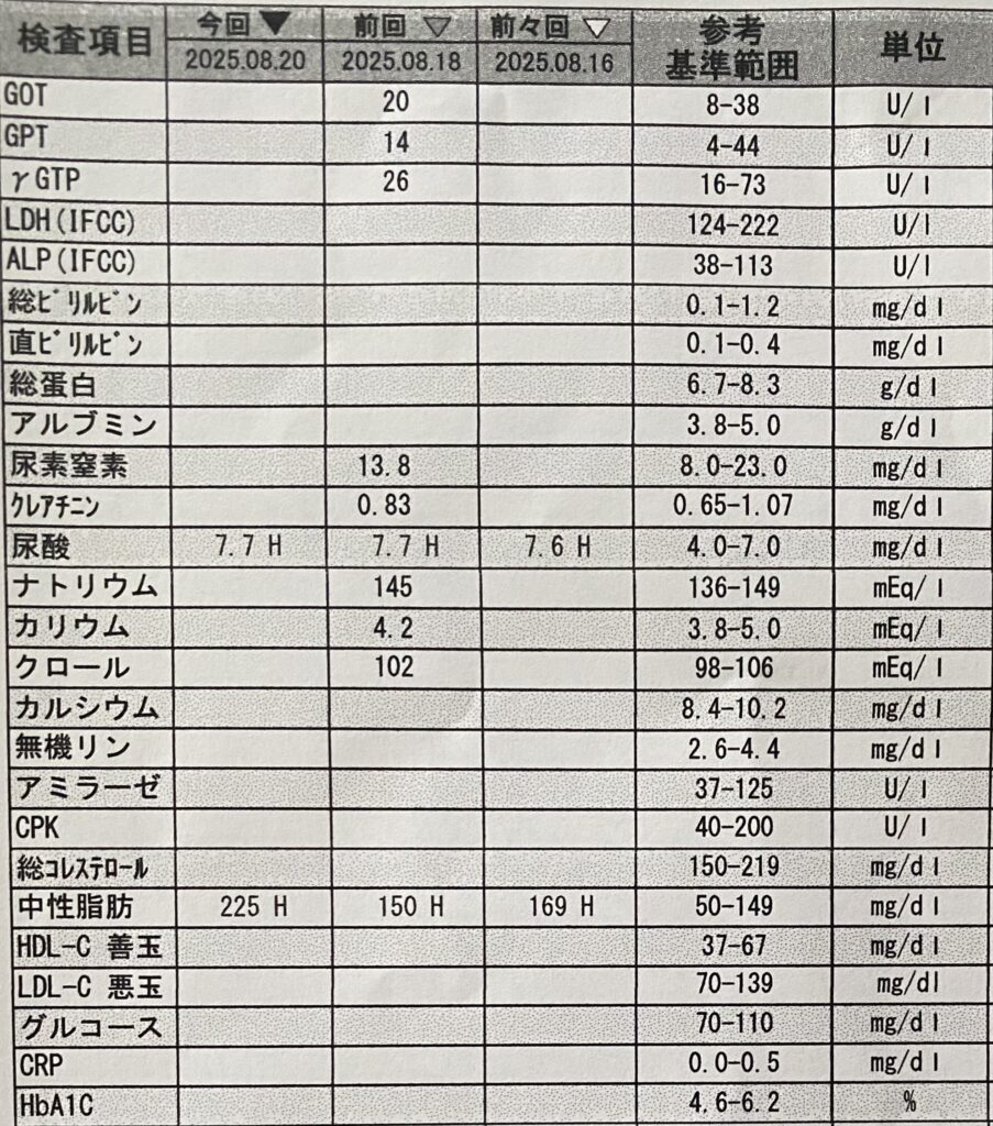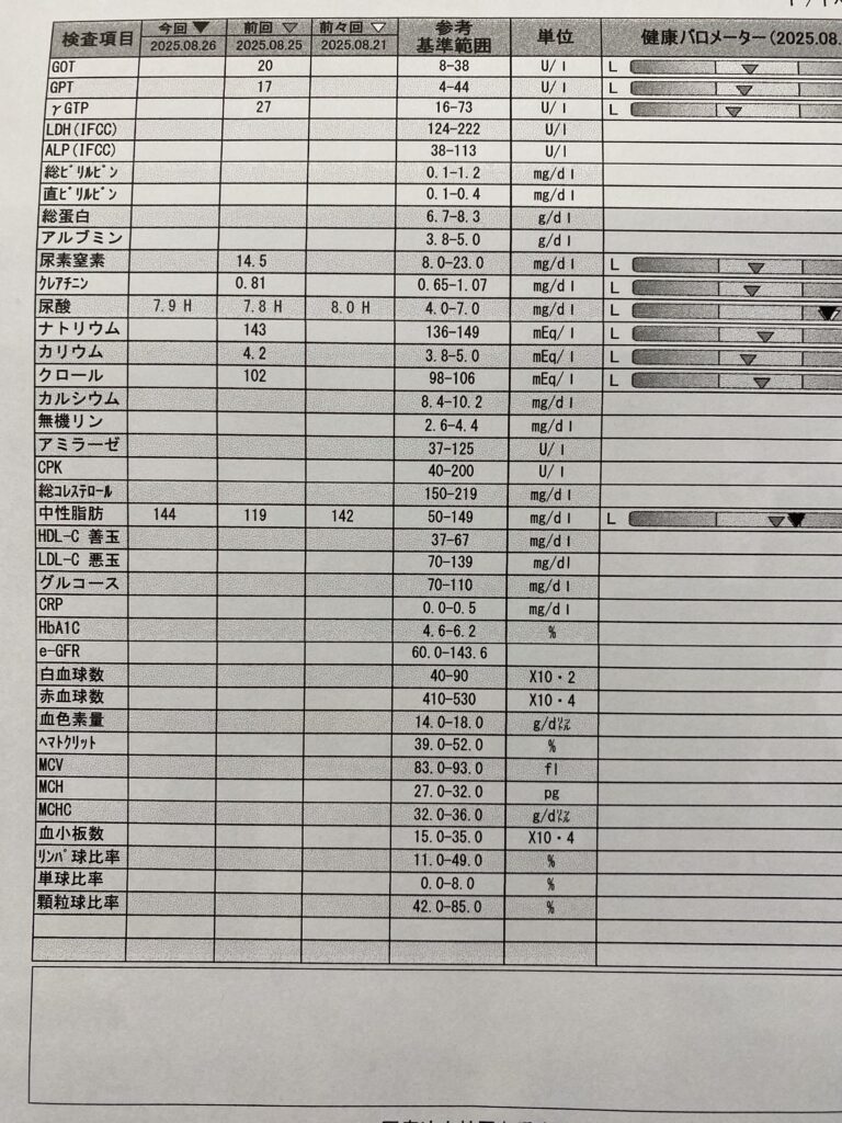 今回のデータを見て、高尿酸血症の薬を飲む日が近いのかもしれないと感じています😔