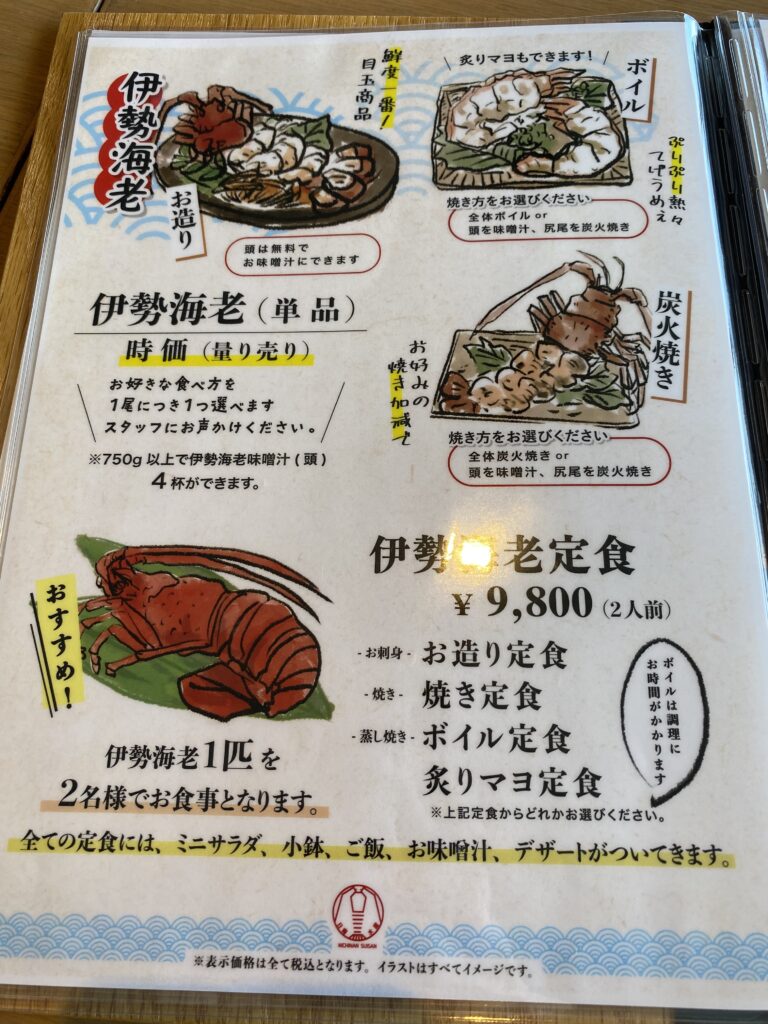• 伊勢海老(刺身・炭火焼・味噌汁)