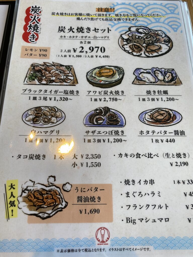 • 牡蠣、サザエ、ホタテ、ハマグリ